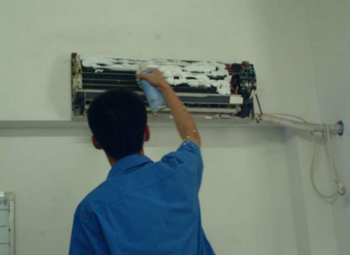 | 苏州市空调维修师傅给苏州市用户上门维修清洗空调。 |